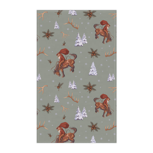 Cowboy Santa Kitchen Towel in Sage