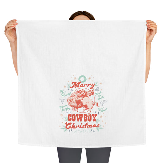 Cowboy Santa Kitchen Towel in Frosty Blue
