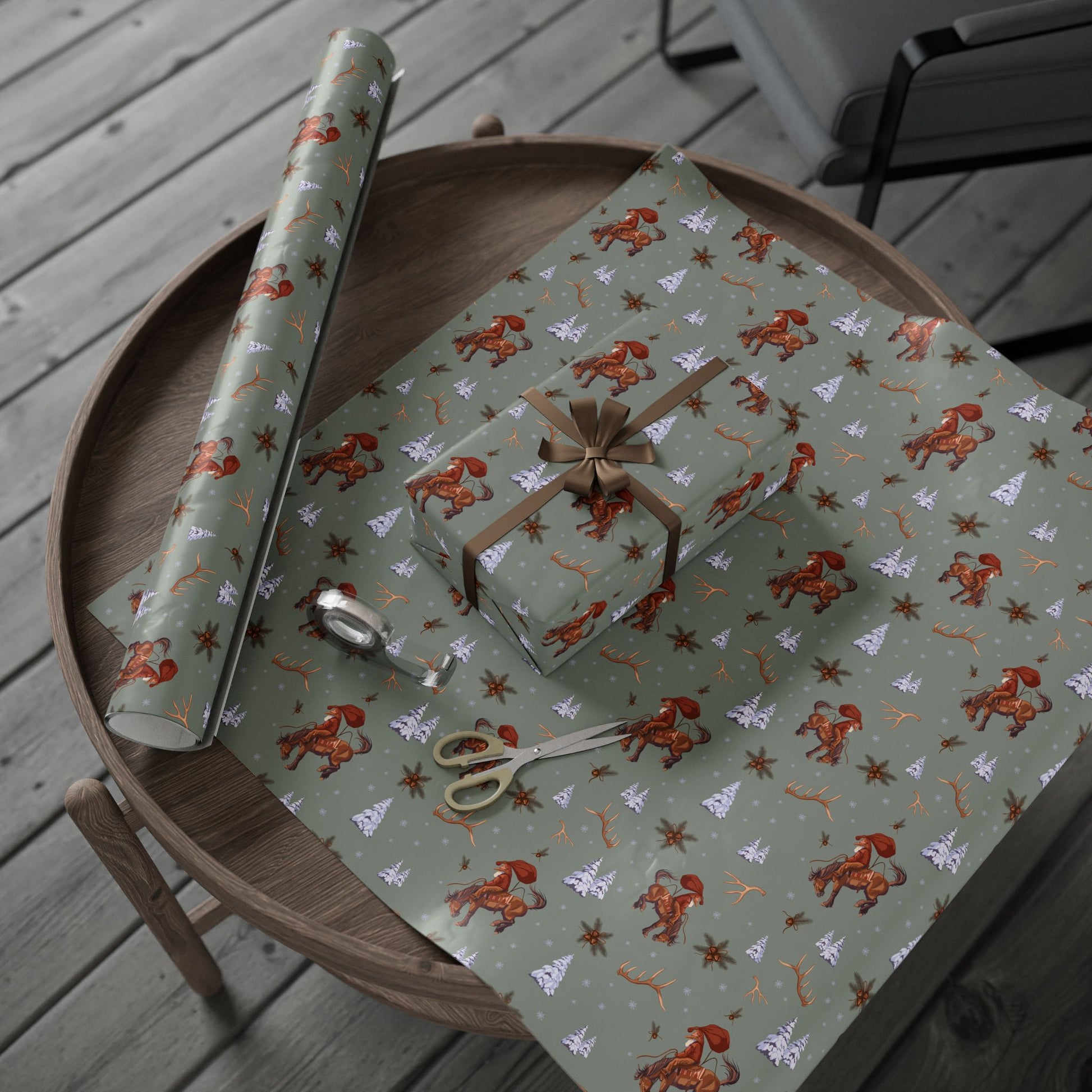 Cowboy Santa Wrapping Paper in Sage