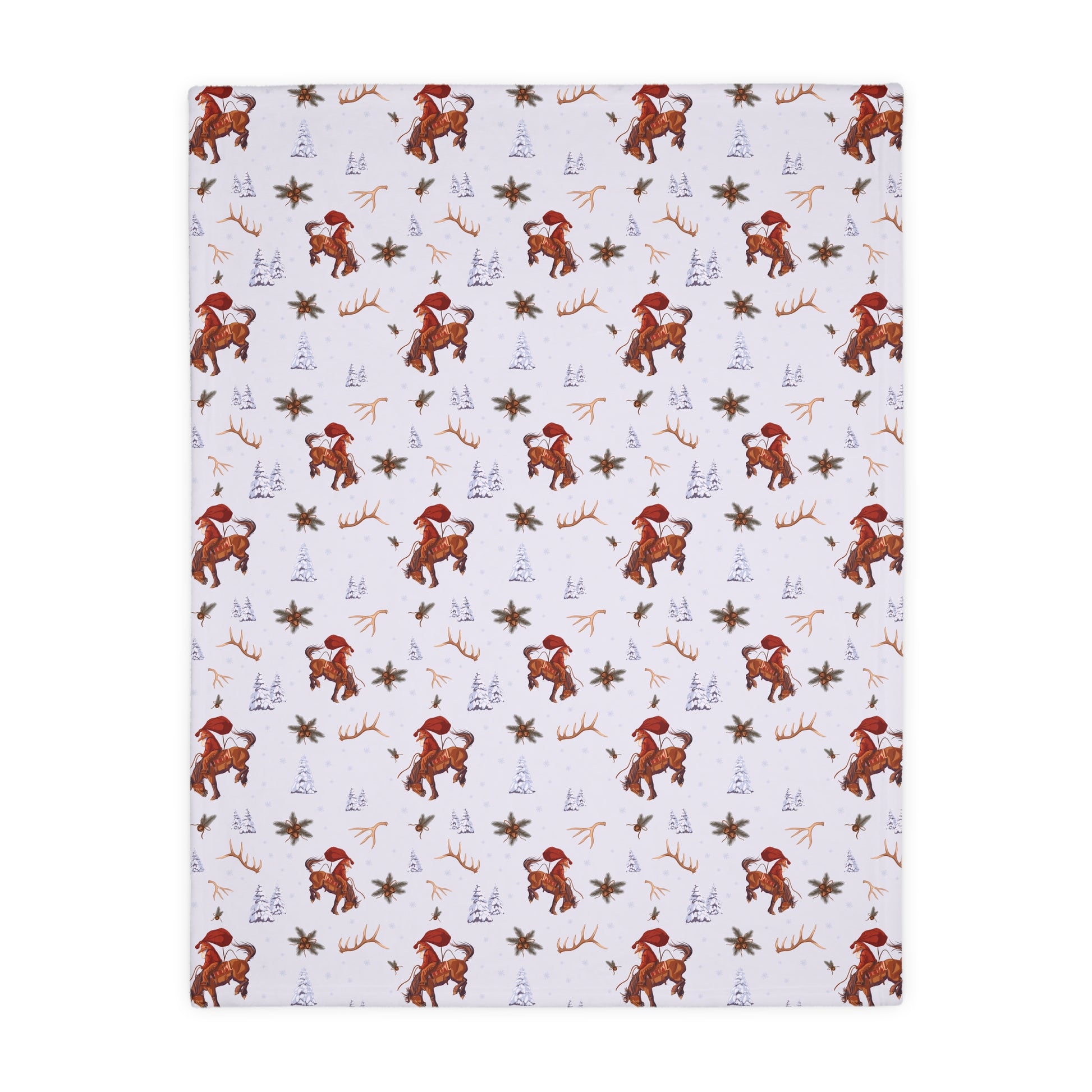 A velvety, double-sided blanket that features my original Cowboy Santa pattern in Frosty Blue. Artwork is hand drawn by Talia Whatcott, copyright Talia Whatcott Creative, LLC. All rights reserved.