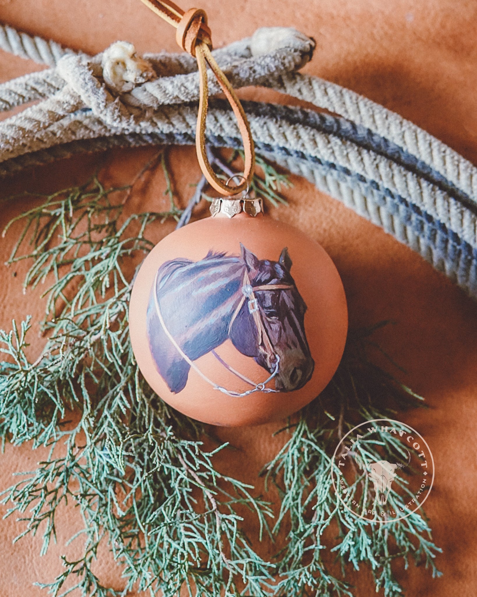 Each ornament is a small work of art! Western subjects and florals meticulously hand-painted by Talia Whatcott.