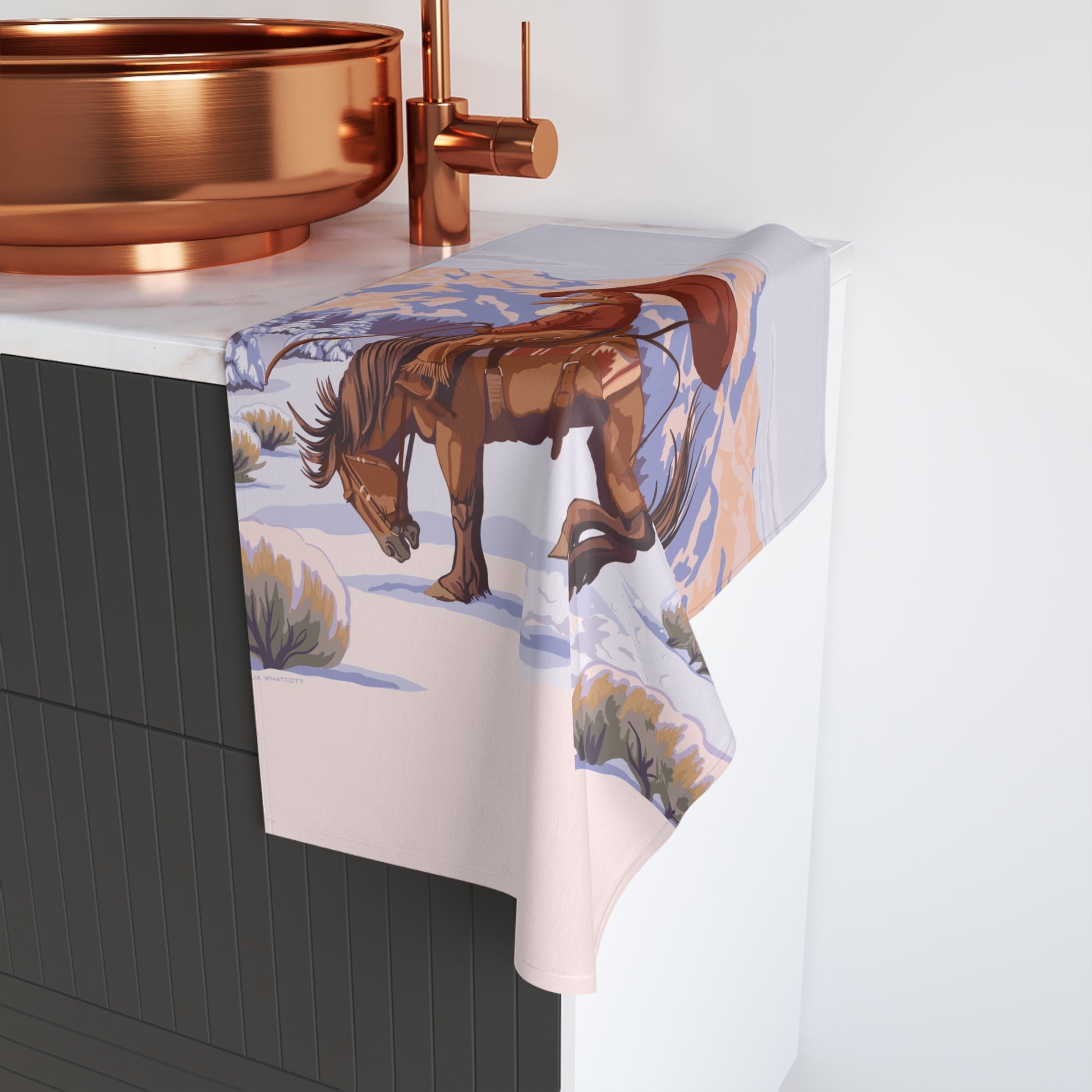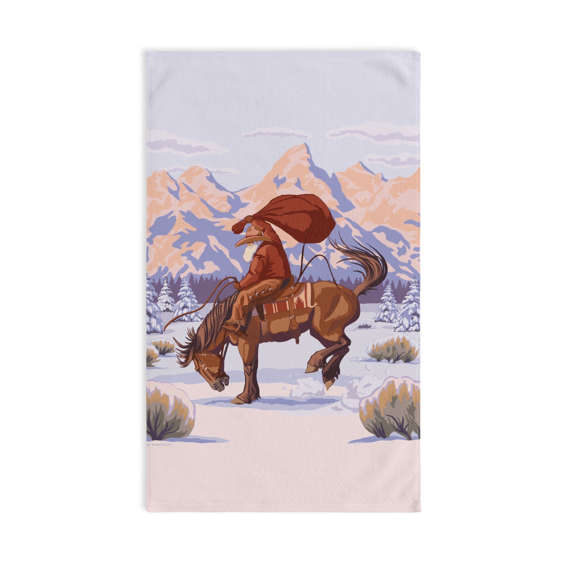 This hand towel features my original Wyoming Cowboy Santa design. The lightweight 52% polyester / 48% cotton fabric feels gentle on skin and dries quickly after use. More absorbent than our regular kitchen towel. Artwork is copyright Talia Whatcott Creative, LLC. All rights reserved.