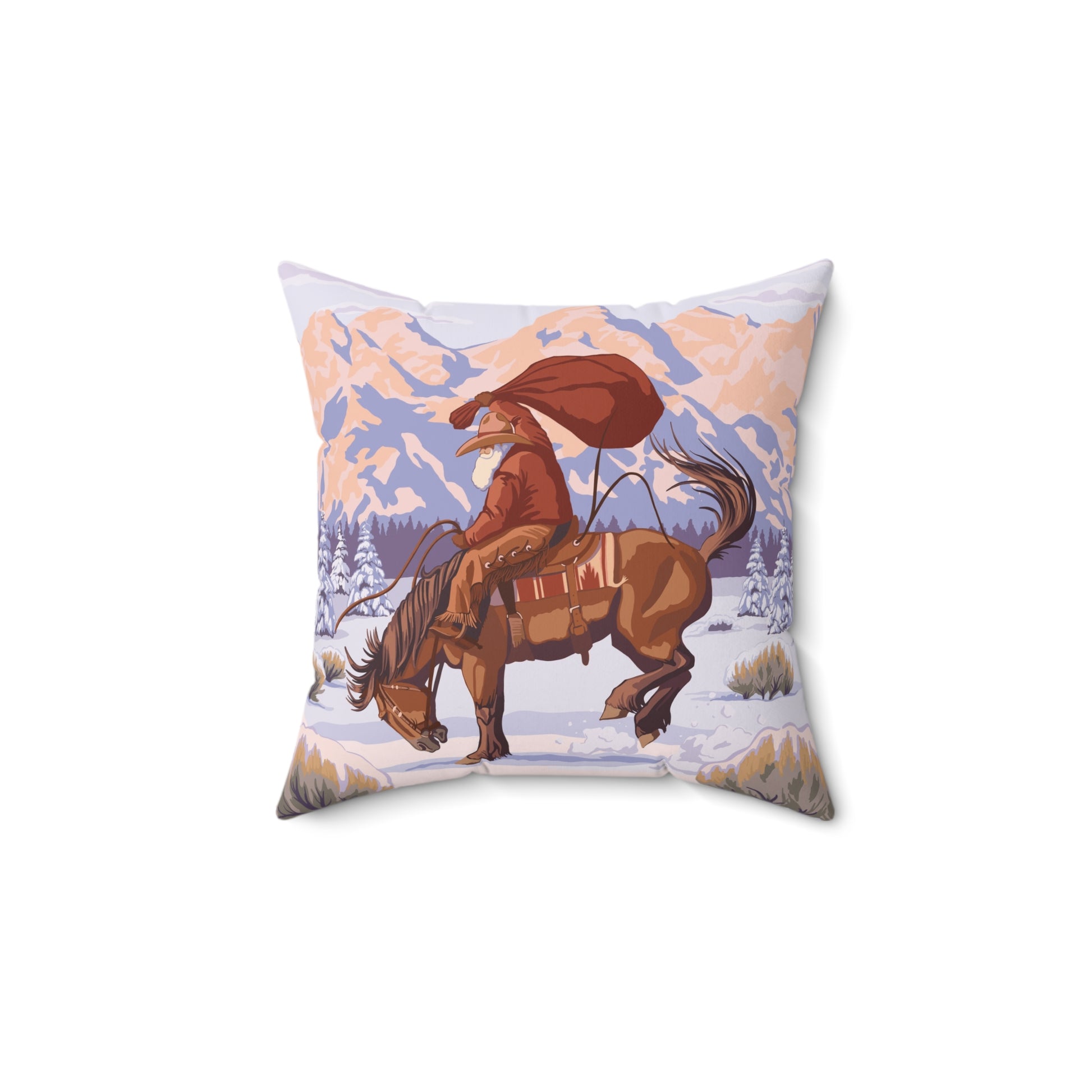 Fancy throw pillow to add to your Christmas decor featuring my original Wyoming Cowboy Santa design. Artwork is hand drawn by Talia Whatcott, copyright Talia Whatcott Creative, LLC. All rights reserved.